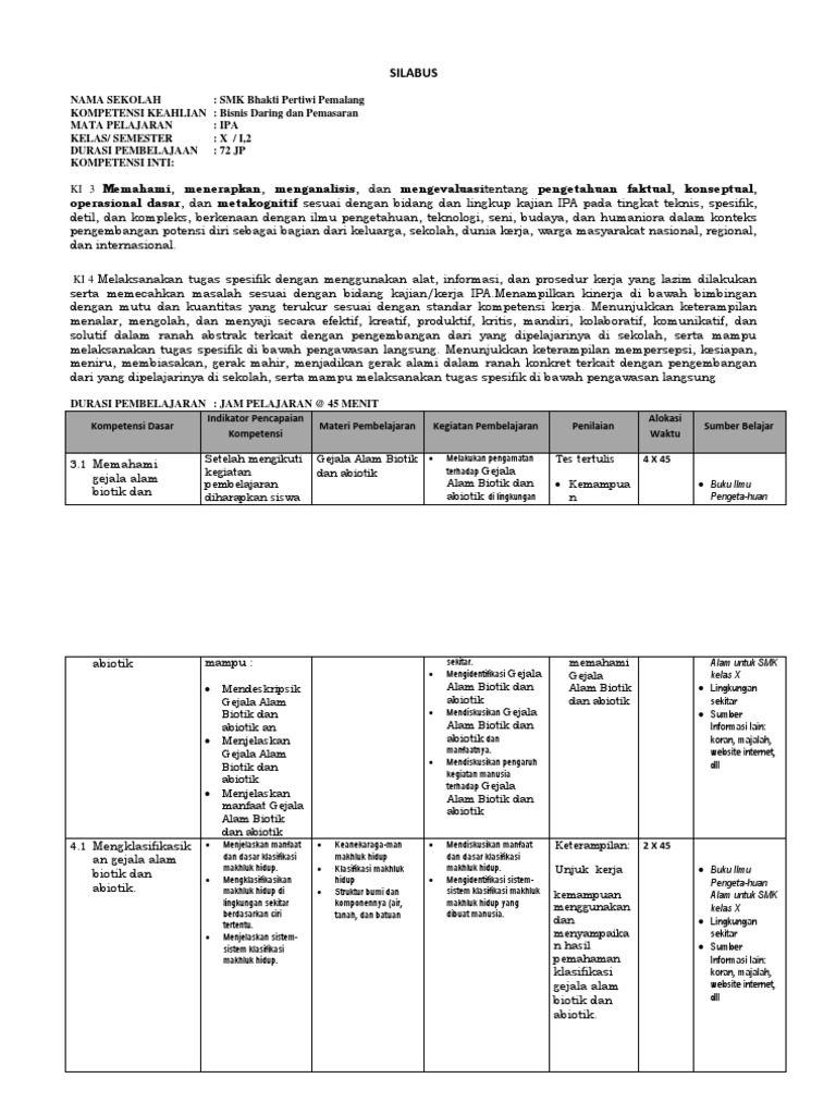 Sistem persamaan linear tiga variabel. Kelas 10 fisikapdf file size 111 mb. Materi ipa kelas 10 smk kurikulum 2013 revisi.silabus ipa kelas 10 smk kurikulum 2013 revisi 2017 rpp adalah singkatan dari rancangan pelaksanaan pembelajaran sedangkan silabus adalah serangkaian rancangan dasar pelaksanaan pembelajaran yang meliputi kompetensi dasar materi pokok pembelajaran kegiatan pembelajaran indikator penilaian alokasi waktu dan sumber belajar. Pada kesempatan kali ini admin ingin share perangkat pembelajaran berupa program tahunan sma/ma/smk khusunya kelas x (10). Silabus ipa kelas 10 smk kurikulum 2013 revisi 2017.