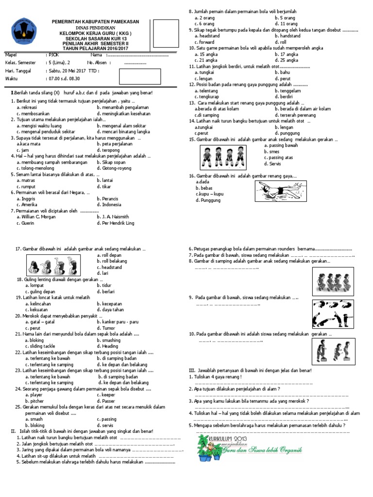 Kisi kisi pjok semester 2. Serta diberikan kesehatan oleh tuhan yang maha esa. Soal pts kelas v semester 1 k13 tahun 2020. Soal penjaskes smp kelas 7 dan kunci jawaban semester 2 kurikulum 2013. Apr 04, 2021 · download soal pts uts pjok kelas 4 semester 1 sd mi kurikulum 2013 tp 2020 2021 sdn sobang 2.