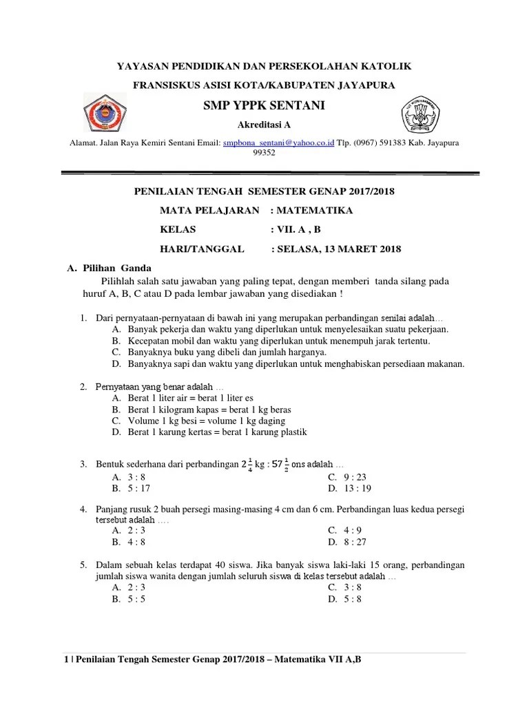 Latihan soal matematika smp perbandingan kelas 7 (naufal) i. Contoh soal matematika smp pilihan ganda. Pembahasan uji kompetensi 2 matematika smp kelas 7 kurikulum 2013 . Putu diah anggaraeni 7 oktober 2021, 08:10 wib. Matematikastudycenter.com_ contoh soal dan pembahasan jawaban perbandingan dan skala, materi ulangan harian matematika kelas 7 smp mencakup perbandingan .